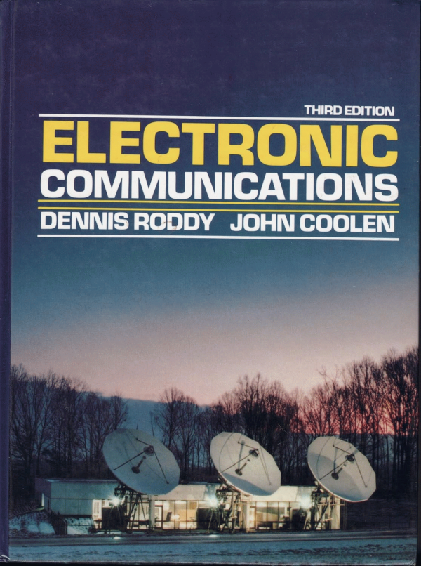 El libro Electronic Communications (Dennis Roddy, 1984) presenta de manera integral los fundamentos teóricos y prácticos de los sistemas de comunicación electrónicos, abordando desde la introducción a conceptos básicos de espectro de frecuencias y análisis de señales, hasta los diferentes tipos de modulación (AM, SSB, FM, PM y pulsos), el efecto del ruido en los sistemas, así como la operación de transmisores, receptores, líneas de transmisión, antenas y propagación. Además, dedica capítulos a la telefonía, la televisión, la transmisión por satélites y la comunicación por fibra óptica, ofreciendo una visión completa de la evolución y aplicaciones de las telecomunicaciones, combinando rigor matemático con ejemplos prácticos.